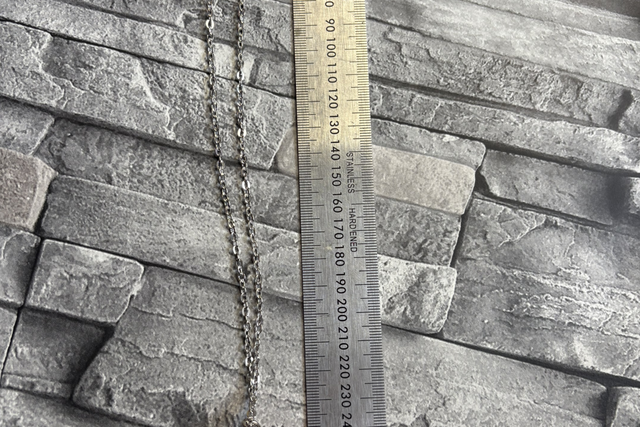 it comes on a stainless steel chain and measures approximately 28 cms including the mushroom.
