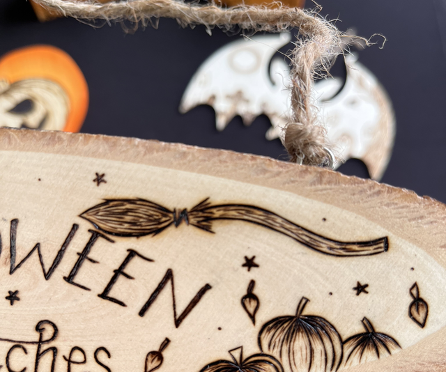 I’ve burnt some pumpkins, mushrooms and a broom on to it