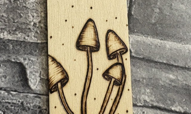 i’m a huge mushroom fan and get lots of inspiration from nature around me and from my walks into the woods. I enjoy bringing that inspiration into my burns. My bookmarks aren’t just functional they are also mini works of art. Each piece is sketched and then burnt by hand using my pyrography pen, I don’t use stencils so each one is totally unique.